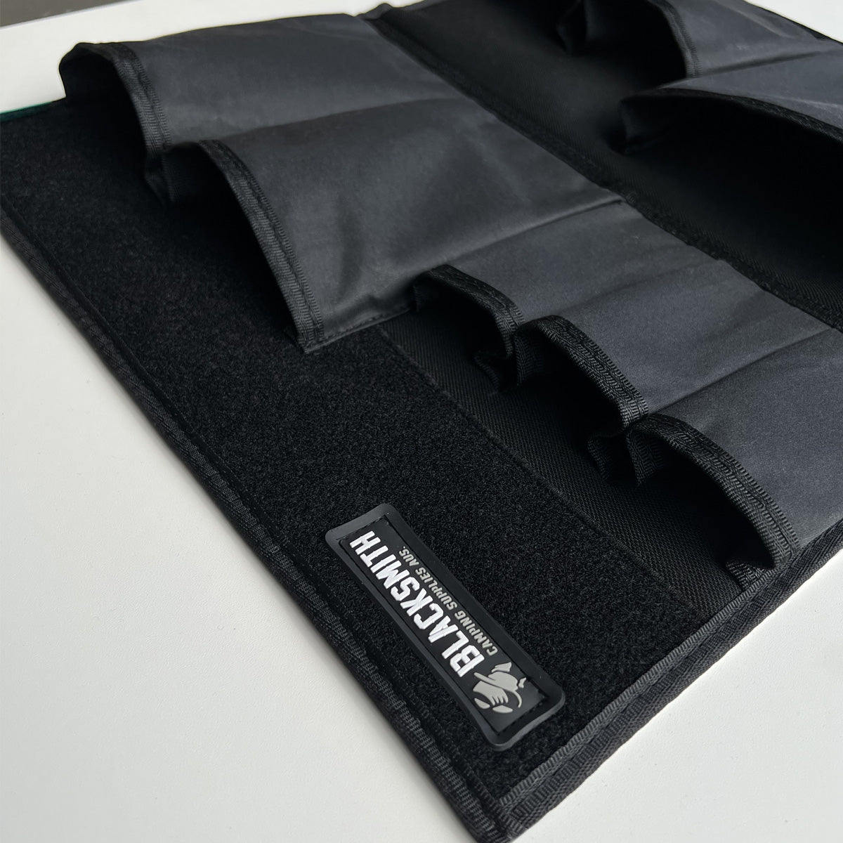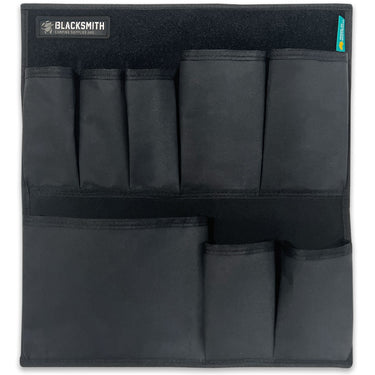 - 1 jumbo bottom-pocket (paper towel, small plates) - Top velcro panel to attach smaller items (lighter, bottle opener) or, collectable patches